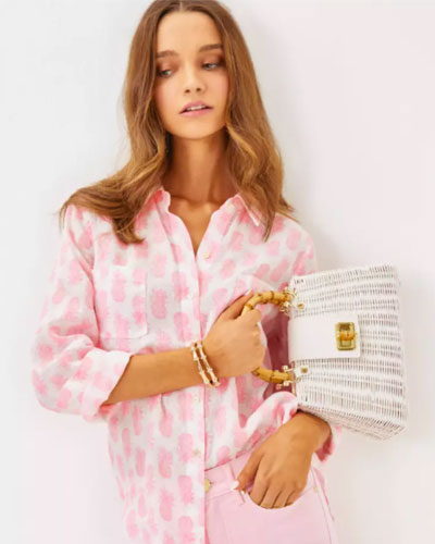 True to the brand’s roots, the Leena bag showcases one of Lilly Pulitzer’s iconic prints, bursting with vibrant colors and tropical charm. Whether it’s soft pastels, blooming florals, or palm-inspired patterns, this bag is designed to brighten your day and add a joyful pop to any ensemble.